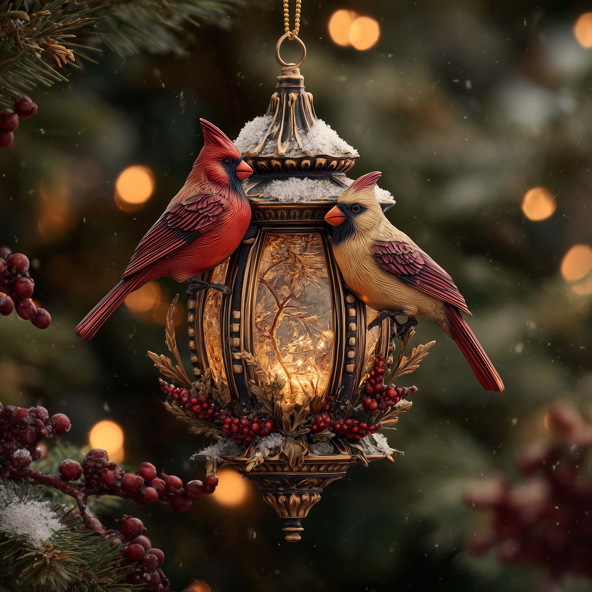 Festive Winter Cardinal Christmas Mica Ornament GFSPHD88